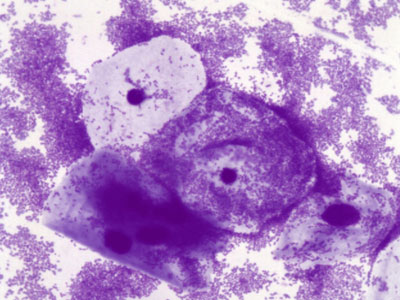 • Лабораторное исследование мазков. После взятия мазков врачами-лаборантами производится так называемая окраска мазков по Грамму специальными красителями, и затем – гинекологическое исследование мазков под микроскопом. Разные части клеток и бактерии окрашиваются в разные цвета, что позволяет оценить состав выделений из уретры, влагалища и шейки матки.