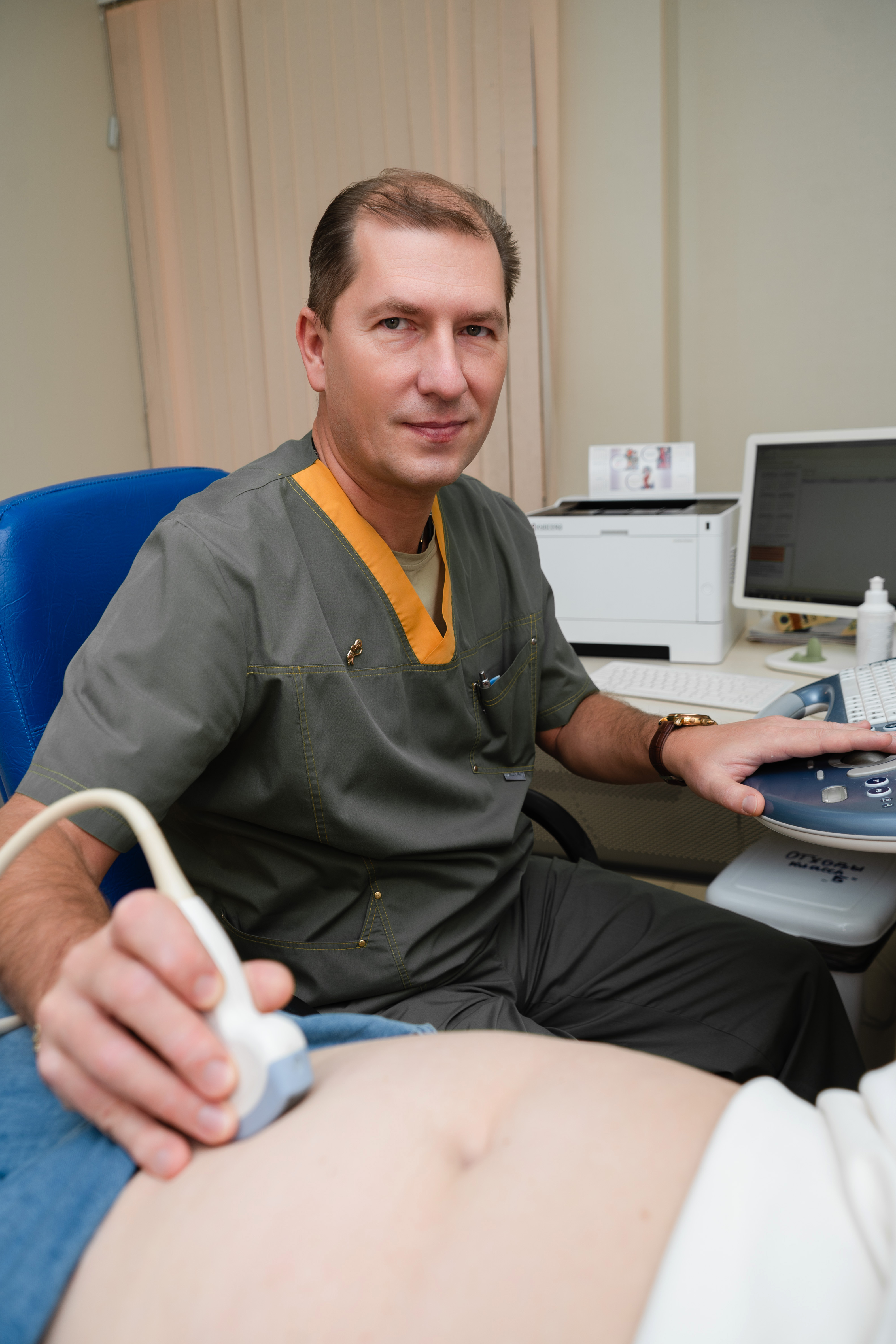 УЗИ проводят с использованием абдоминального датчика - через переднюю брюшную стенку. Время исследования 20-30 минут.