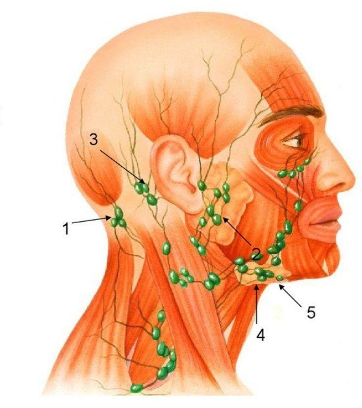 • Передне-шейные, задне-шейные, затылочные, ушные.
